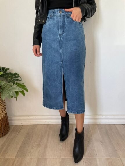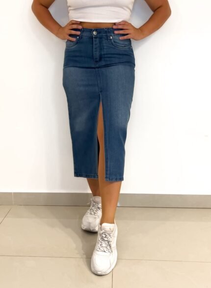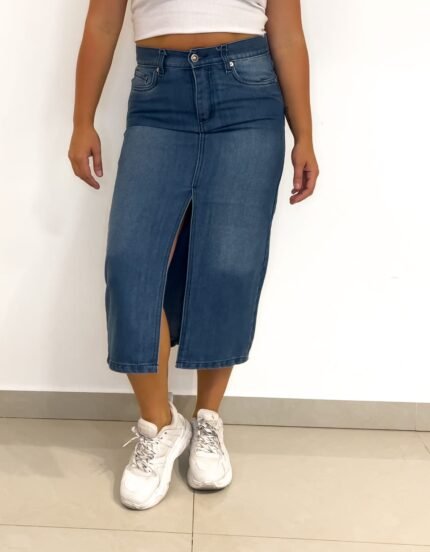 POLLERA LARGA CON TAJO AZUL NEVADA
